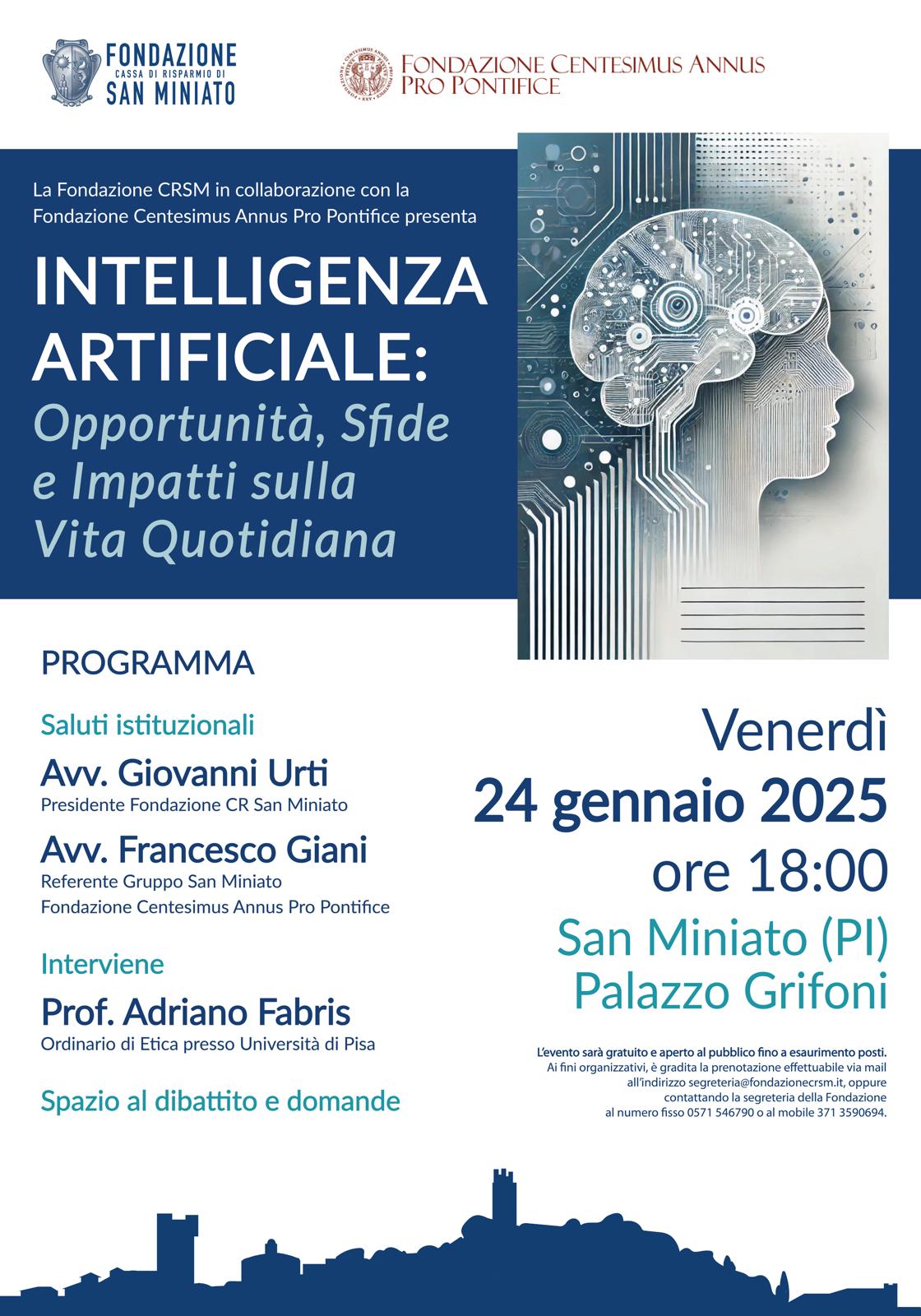 Venerdì 24 gennaio: INTELLIGENZA ARTIFICIALE: Opportunità, Sfide e Impatti sulla Vita Quotidiana